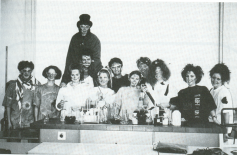 Es ist schwierig, lustige Anekdoten über den Chemie-LK Averesch zu berichten, aber wir wollen unseren Nachfolgern doch einige Tips geben: Die Kunst bestand darin, langgegorene, explosive Substanzen ohne bleibenden Schaden zu überwinden. Im Umgang mit diesen Stoffen erwies sich die vierköpfige Tutorengruppe als äußerst geschickt, indem sie sie behutsam mit einer dünnen Schleimschicht überzog. Wem diese Fähigkeit aus verschiedenen Gründen nicht gegeben war, der hatte ein schweres Los gezogen, denn die "Tutti-Gruppe"(!!!!) ging stets als Sieger nach Punkten hervor. Als Bonus, den allerdings nur zwei Mitschülerinnen erreichten, stand eine innige Umarmung aus.
